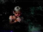 with his parents in the outback.